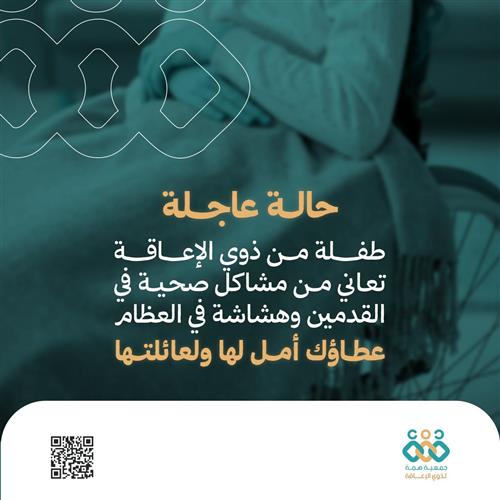 طفل من ذوي الإعاقة يعاني من مشاكل صحية في القدمين وهشاشة في العظام بحاجة عاجلة لمستلزمات صحية وجلسات تأهيلية لتتحسن حالته ساهم في تخفيف ألمه وتفريج كربته وكربة أسرته والله يحب المحسنين